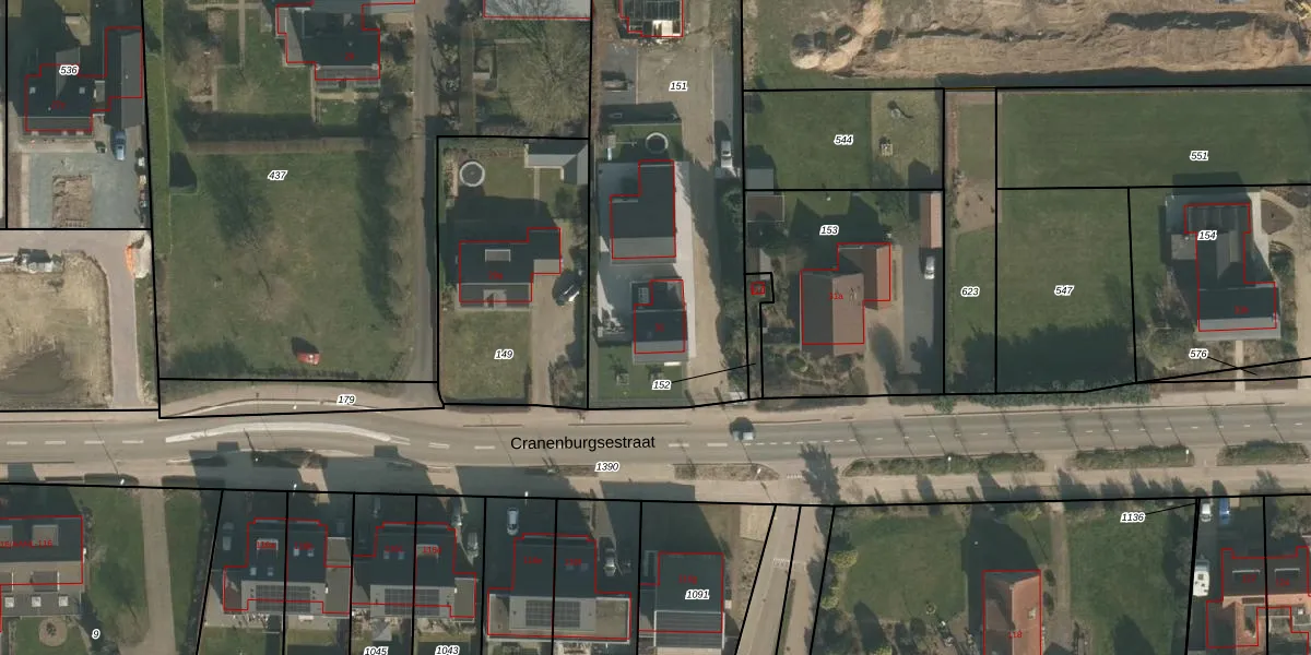 Het perceel waarop Cranenburgsestraat 31 staat heeft een oppervlakte van 1895 m². Dit is een zeer groot perceel. De perceeloppervlakte wordt geregistreerd door het Kadaster. Gedetailleerde informatie over de maten van dit perceel kunt u vinden in het rapport Kadastrale kaart met maatvoering van Cranenburgsestraat 31.