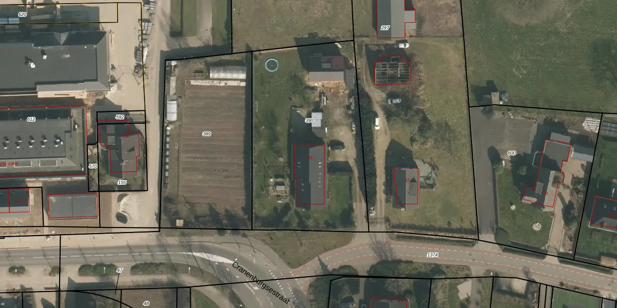 Cranenburgsestraat 35 is gelegen op kadastraal perceel GBK00O390. Deze kadastrale aanduiding is uniek en wordt gebruikt door het Kadaster om eigendomsrechten en andere zakelijke rechten vast te leggen. Het perceel maakt onderdeel uit van de kadastrale gemeente Groesbeek.