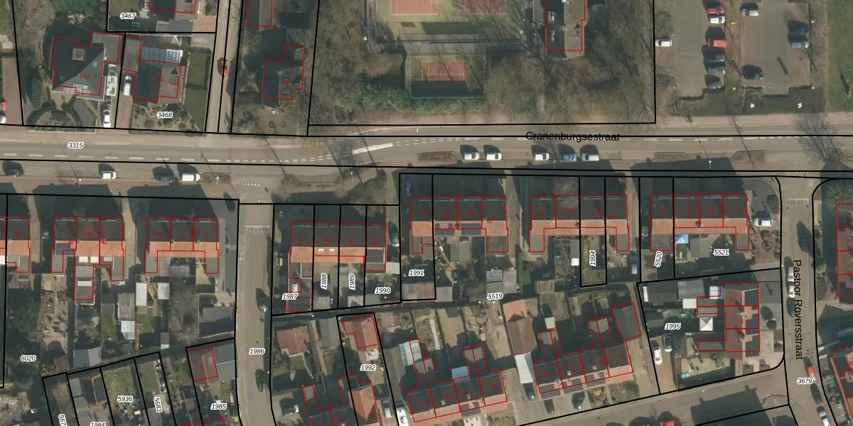 Het perceel waarop Cranenburgsestraat 54 staat heeft een oppervlakte van 229 m². Dit is een middelgroot perceel. De perceeloppervlakte wordt geregistreerd door het Kadaster. Gedetailleerde informatie over de maten van dit perceel kunt u vinden in het rapport Kadastrale kaart met maatvoering van Cranenburgsestraat 54.
