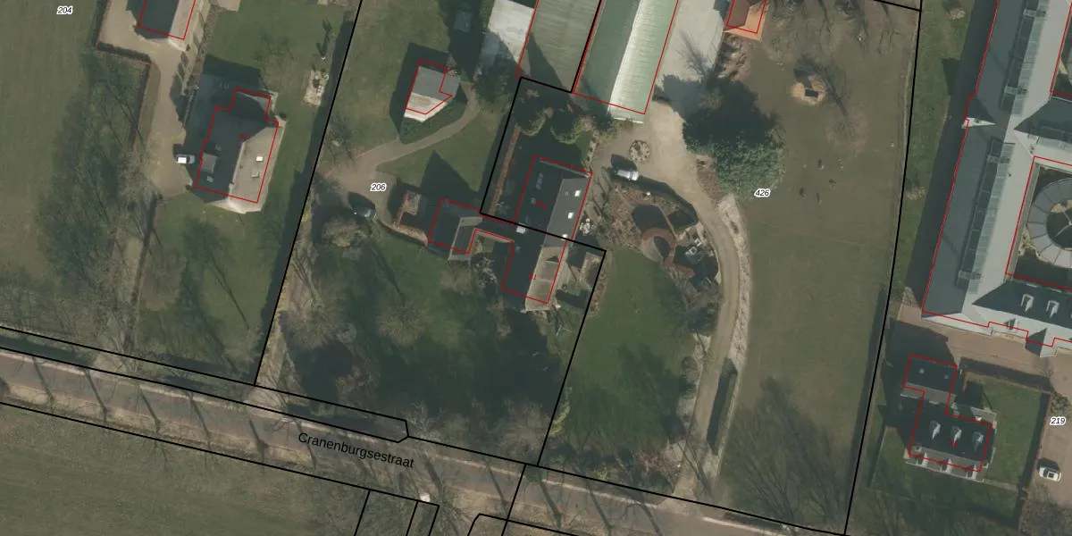 Het perceel waarop Cranenburgsestraat 61 staat heeft een oppervlakte van 4205 m². Dit is een zeer groot perceel. De perceeloppervlakte wordt geregistreerd door het Kadaster. Gedetailleerde informatie over de maten van dit perceel kunt u vinden in het rapport Kadastrale kaart met maatvoering van Cranenburgsestraat 61.