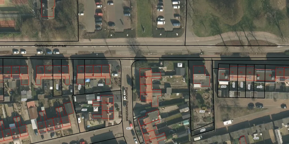 Cranenburgsestraat 76 is gelegen op kadastraal perceel GBK00L5654. Deze kadastrale aanduiding is uniek en wordt gebruikt door het Kadaster om eigendomsrechten en andere zakelijke rechten vast te leggen. Het perceel maakt onderdeel uit van de kadastrale gemeente Groesbeek.