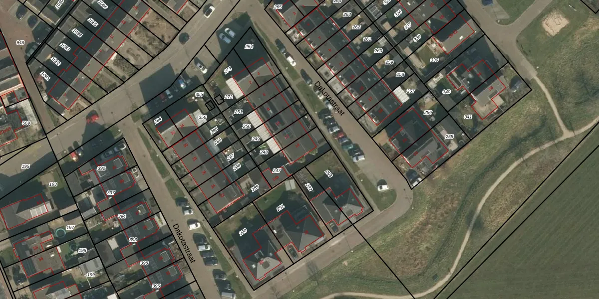 Het perceel waarop Dakotastraat 14 staat heeft een oppervlakte van 214 m². Dit is een middelgroot perceel. De perceeloppervlakte wordt geregistreerd door het Kadaster. Gedetailleerde informatie over de maten van dit perceel kunt u vinden in het rapport Kadastrale kaart met maatvoering van Dakotastraat 14.