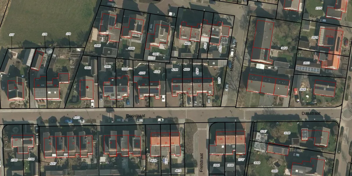 Het perceel waarop Dasstraat 16 staat heeft een oppervlakte van 261 m². Dit is een middelgroot perceel. De perceeloppervlakte wordt geregistreerd door het Kadaster. Gedetailleerde informatie over de maten van dit perceel kunt u vinden in het rapport Kadastrale kaart met maatvoering van Dasstraat 16.