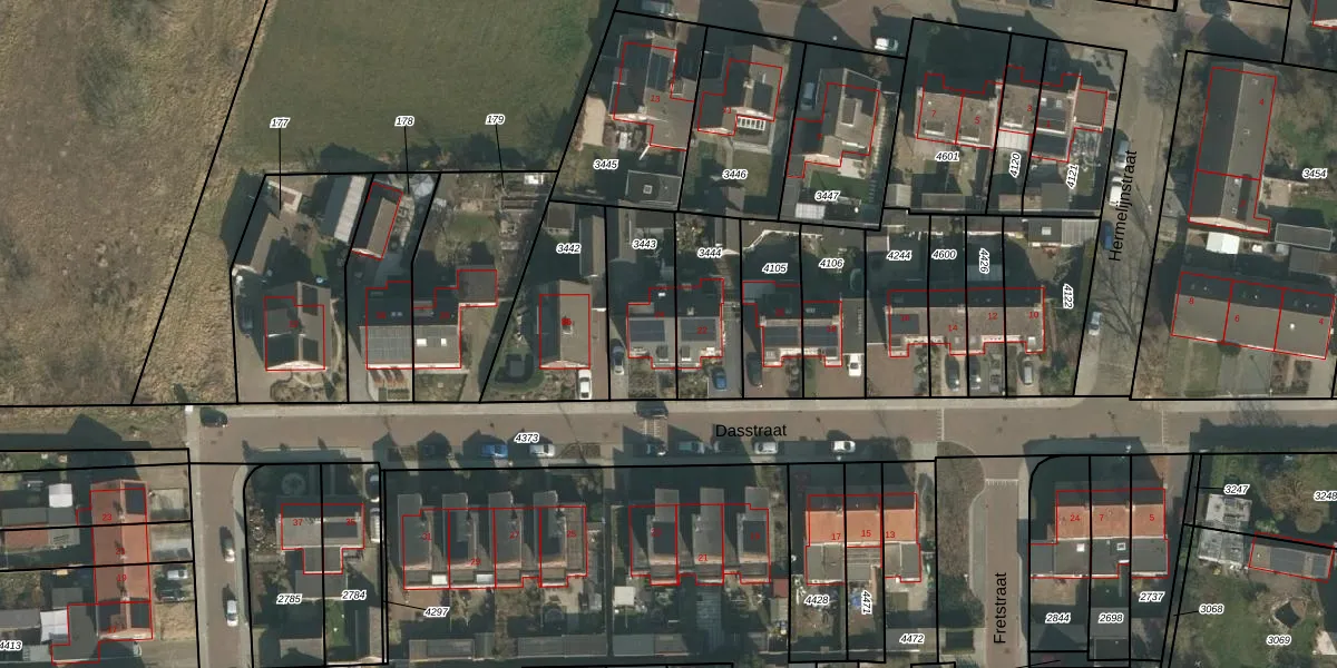 Dasstraat 24 is gelegen op kadastraal perceel GBK00C3443. Deze kadastrale aanduiding is uniek en wordt gebruikt door het Kadaster om eigendomsrechten en andere zakelijke rechten vast te leggen. Het perceel maakt onderdeel uit van de kadastrale gemeente Groesbeek.