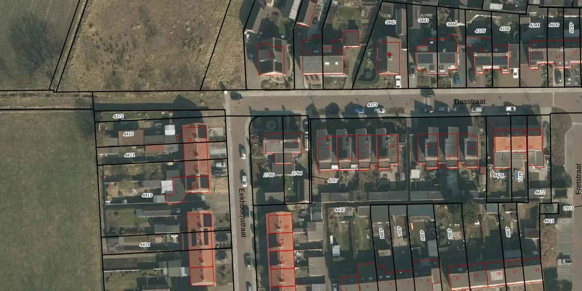 Het perceel waarop Dasstraat 35 staat heeft een oppervlakte van 263 m². Dit is een middelgroot perceel. De perceeloppervlakte wordt geregistreerd door het Kadaster. Gedetailleerde informatie over de maten van dit perceel kunt u vinden in het rapport Kadastrale kaart met maatvoering van Dasstraat 35.