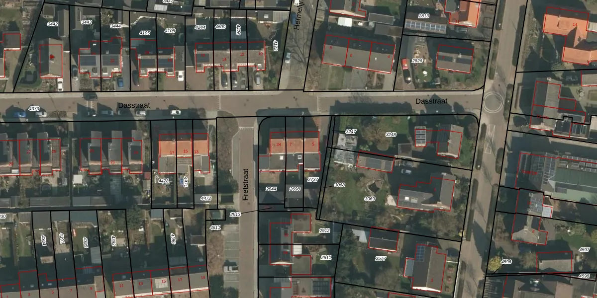 Het perceel waarop Dasstraat 7 staat heeft een oppervlakte van 188 m². Dit is een middelgroot perceel. De perceeloppervlakte wordt geregistreerd door het Kadaster. Gedetailleerde informatie over de maten van dit perceel kunt u vinden in het rapport Kadastrale kaart met maatvoering van Dasstraat 7.