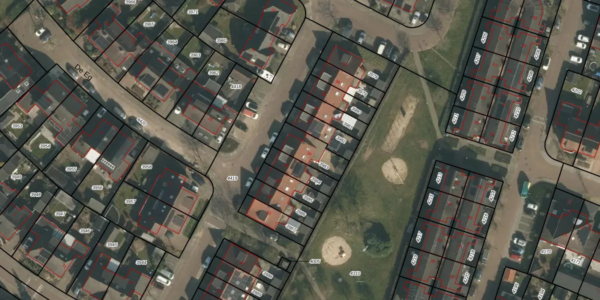 Het perceel waarop De Eg 30 staat heeft een oppervlakte van 217 m². Dit is een middelgroot perceel. De perceeloppervlakte wordt geregistreerd door het Kadaster. Gedetailleerde informatie over de maten van dit perceel kunt u vinden in het rapport Kadastrale kaart met maatvoering van De Eg 30.