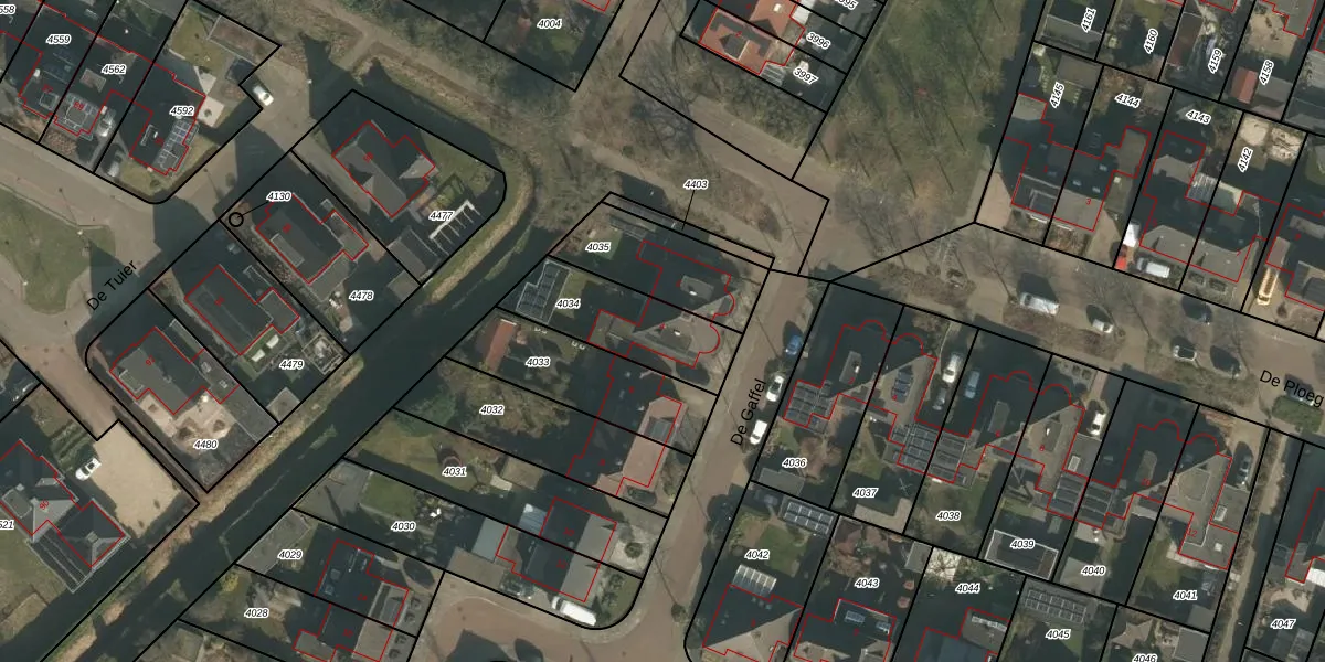 Het perceel waarop De Gaffel 4 staat heeft een oppervlakte van 345 m². Dit is een groot perceel. De perceeloppervlakte wordt geregistreerd door het Kadaster. Gedetailleerde informatie over de maten van dit perceel kunt u vinden in het rapport Kadastrale kaart met maatvoering van De Gaffel 4.