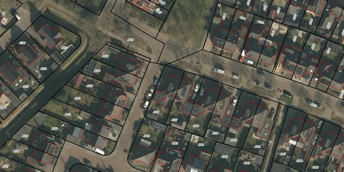Het perceel waarop De Ploeg 2 staat heeft een oppervlakte van 400 m². Dit is een groot perceel. De perceeloppervlakte wordt geregistreerd door het Kadaster. Gedetailleerde informatie over de maten van dit perceel kunt u vinden in het rapport Kadastrale kaart met maatvoering van De Ploeg 2.