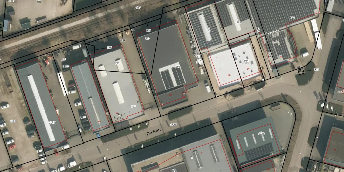 Het perceel waarop De Ren 40 staat heeft een oppervlakte van 1540 m². Dit is een zeer groot perceel. De perceeloppervlakte wordt geregistreerd door het Kadaster. Gedetailleerde informatie over de maten van dit perceel kunt u vinden in het rapport Kadastrale kaart met maatvoering van De Ren 40.