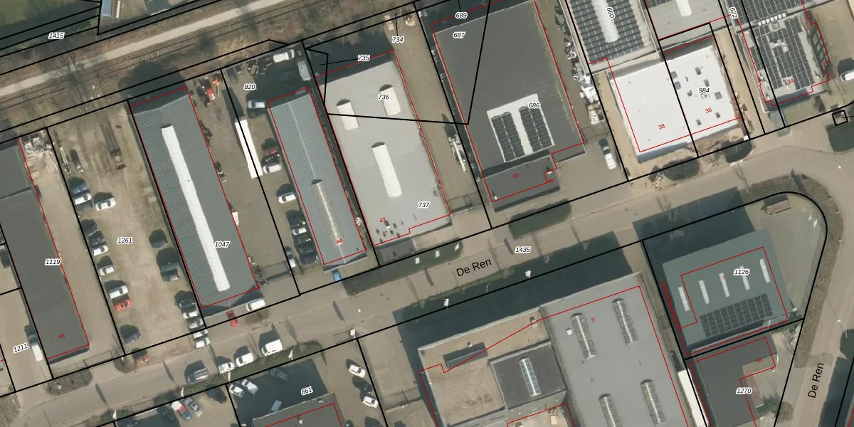 Het perceel waarop De Ren 42 staat heeft een oppervlakte van 886 m². Dit is een groot perceel. De perceeloppervlakte wordt geregistreerd door het Kadaster. Gedetailleerde informatie over de maten van dit perceel kunt u vinden in het rapport Kadastrale kaart met maatvoering van De Ren 42.