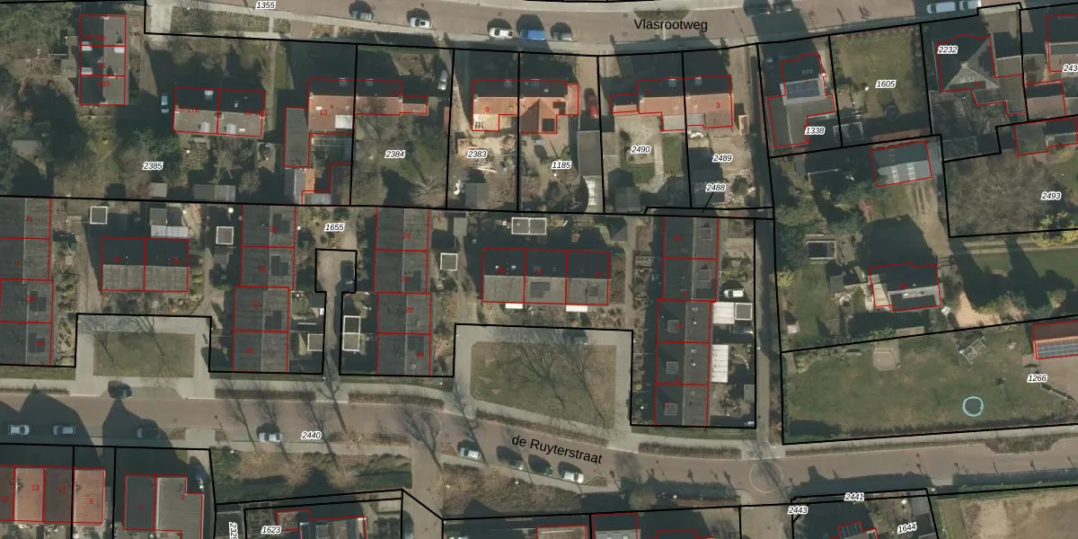 Het perceel waarop de Ruyterstraat 14 staat heeft een oppervlakte van 3990 m². Dit is een zeer groot perceel. De perceeloppervlakte wordt geregistreerd door het Kadaster. Gedetailleerde informatie over de maten van dit perceel kunt u vinden in het rapport Kadastrale kaart met maatvoering van de Ruyterstraat 14.