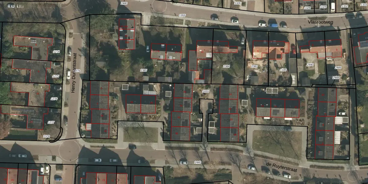 Het perceel waarop de Ruyterstraat 26 staat heeft een oppervlakte van 3990 m². Dit is een zeer groot perceel. De perceeloppervlakte wordt geregistreerd door het Kadaster. Gedetailleerde informatie over de maten van dit perceel kunt u vinden in het rapport Kadastrale kaart met maatvoering van de Ruyterstraat 26.