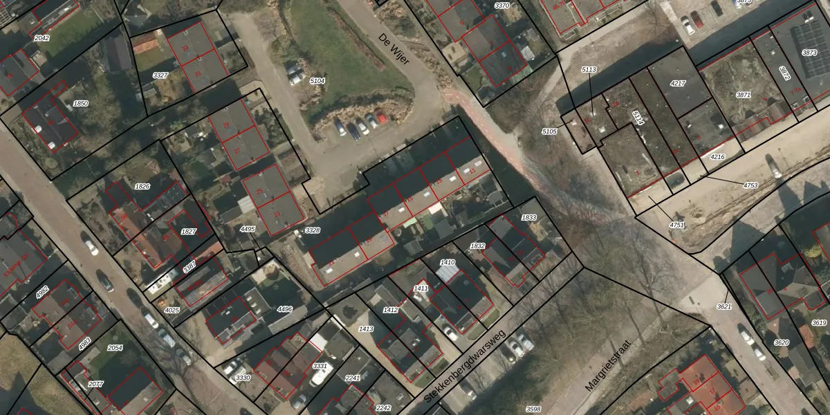 Het perceel waarop De Wijer 15 staat heeft een oppervlakte van 2110 m². Dit is een zeer groot perceel. De perceeloppervlakte wordt geregistreerd door het Kadaster. Gedetailleerde informatie over de maten van dit perceel kunt u vinden in het rapport Kadastrale kaart met maatvoering van De Wijer 15.