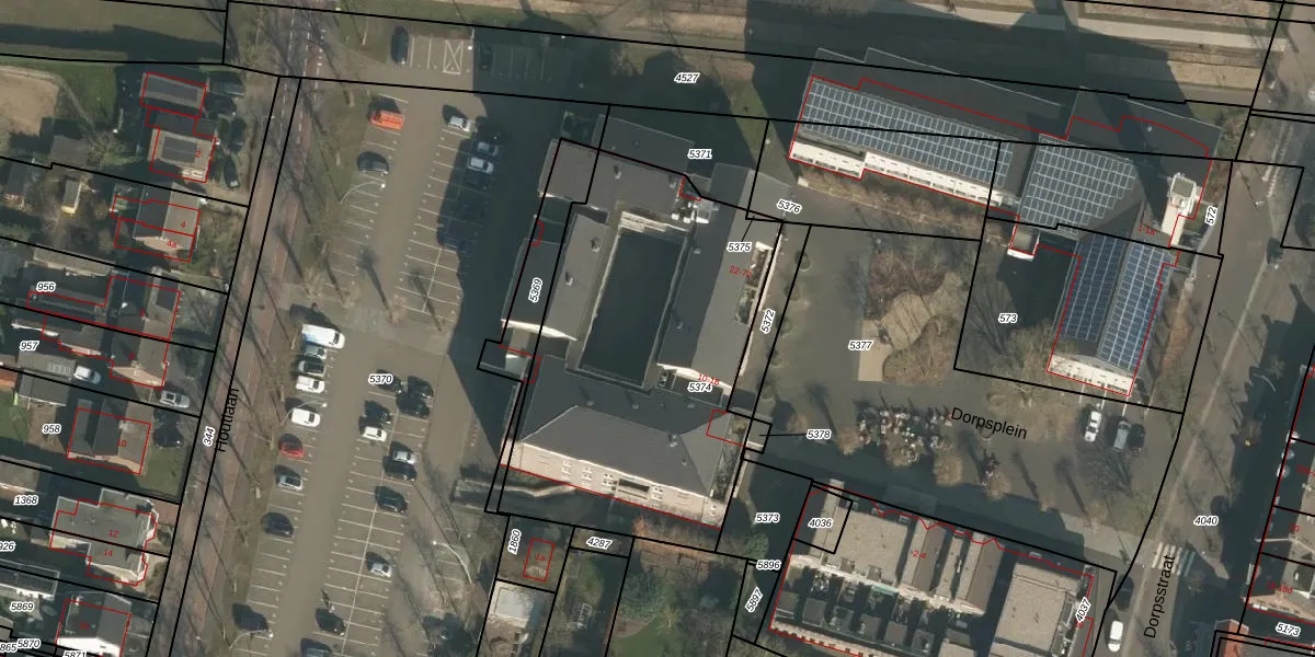 Dorpsplein 16 is gelegen op kadastraal perceel GBK00L5374. Deze kadastrale aanduiding is uniek en wordt gebruikt door het Kadaster om eigendomsrechten en andere zakelijke rechten vast te leggen. Het perceel maakt onderdeel uit van de kadastrale gemeente Groesbeek.
