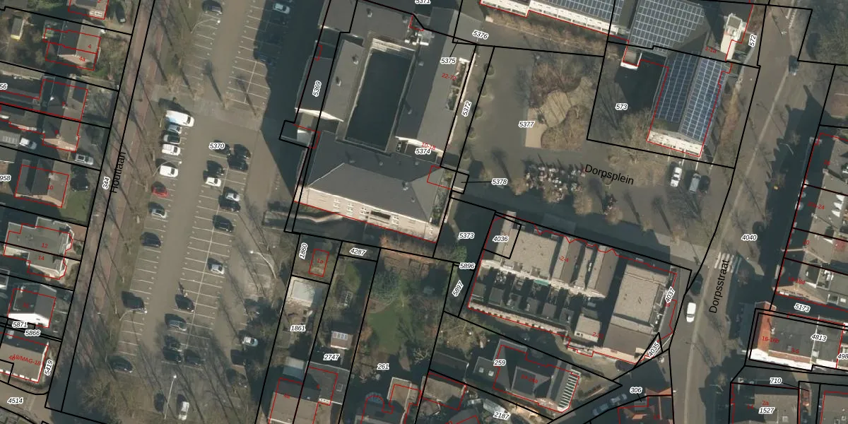 Dorpsplein 48 is gelegen op kadastraal perceel GBK00L5374. Deze kadastrale aanduiding is uniek en wordt gebruikt door het Kadaster om eigendomsrechten en andere zakelijke rechten vast te leggen. Het perceel maakt onderdeel uit van de kadastrale gemeente Groesbeek.