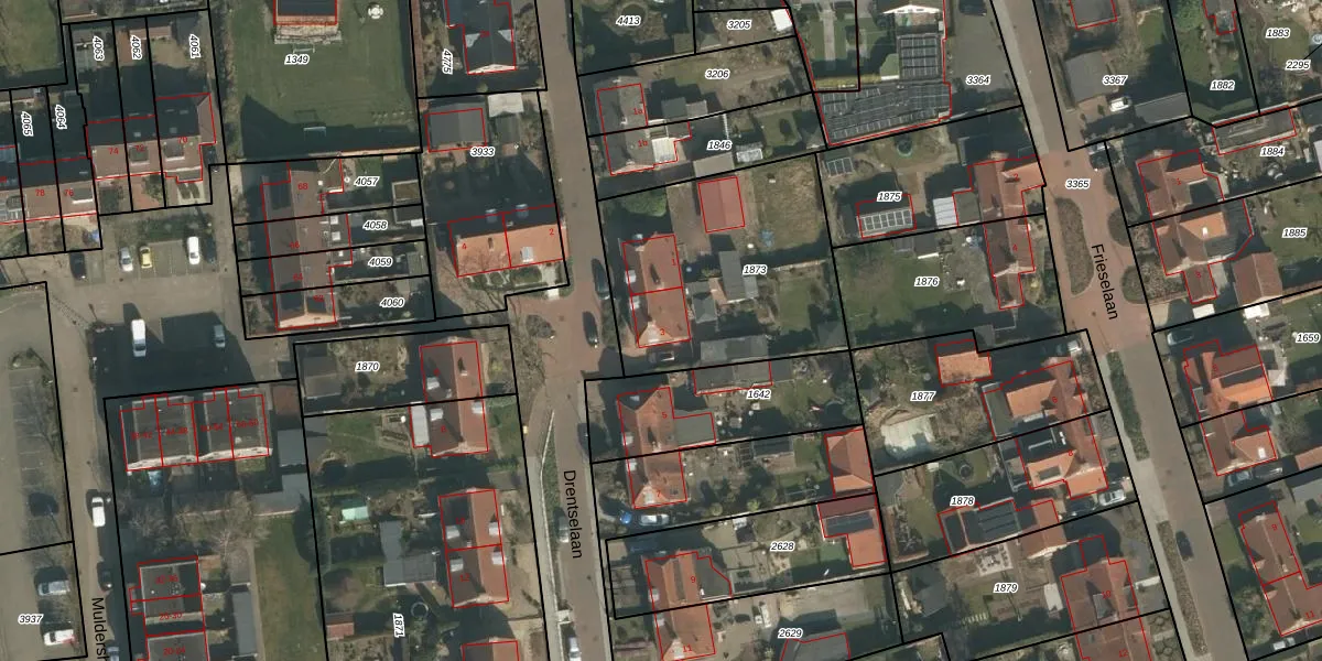Het perceel waarop Drentselaan 3 staat heeft een oppervlakte van 976 m². Dit is een groot perceel. De perceeloppervlakte wordt geregistreerd door het Kadaster. Gedetailleerde informatie over de maten van dit perceel kunt u vinden in het rapport Kadastrale kaart met maatvoering van Drentselaan 3.
