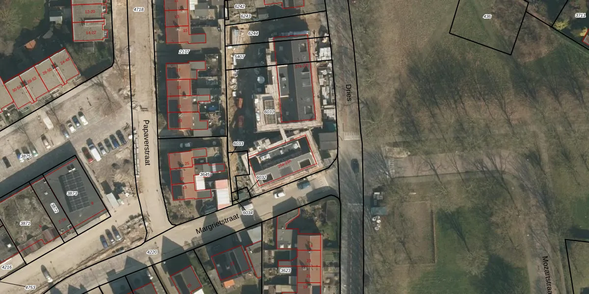 Dries 25-a is gelegen op kadastraal perceel GBK00L6031. Deze kadastrale aanduiding is uniek en wordt gebruikt door het Kadaster om eigendomsrechten en andere zakelijke rechten vast te leggen. Het perceel maakt onderdeel uit van de kadastrale gemeente Groesbeek.