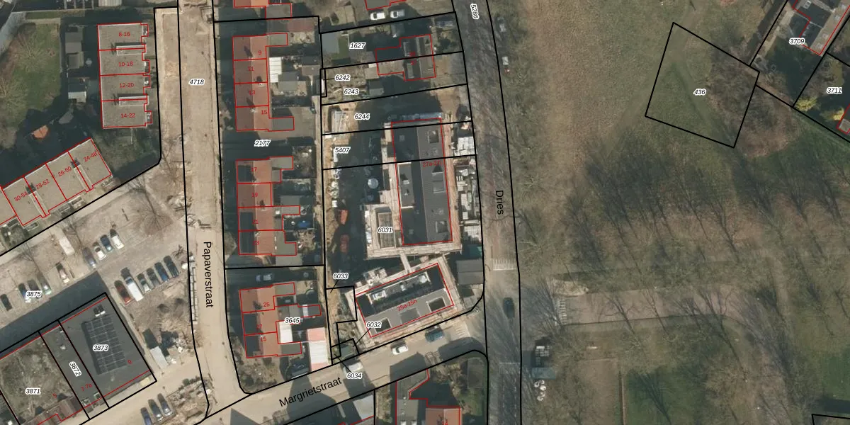 Het perceel waarop Dries 27-f staat heeft een oppervlakte van 1431 m². Dit is een zeer groot perceel. De perceeloppervlakte wordt geregistreerd door het Kadaster. Gedetailleerde informatie over de maten van dit perceel kunt u vinden in het rapport Kadastrale kaart met maatvoering van Dries 27-f.