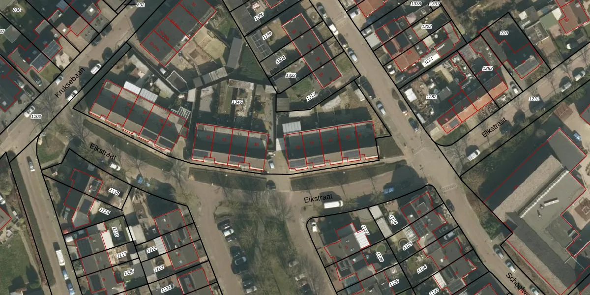 Eikstraat 16 is gelegen op kadastraal perceel GBK00M1346. Deze kadastrale aanduiding is uniek en wordt gebruikt door het Kadaster om eigendomsrechten en andere zakelijke rechten vast te leggen. Het perceel maakt onderdeel uit van de kadastrale gemeente Groesbeek.