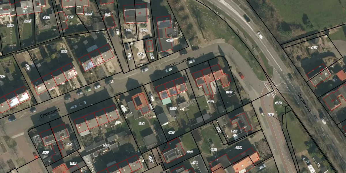 Het perceel waarop Ericastraat 7 staat heeft een oppervlakte van 863 m². Dit is een groot perceel. De perceeloppervlakte wordt geregistreerd door het Kadaster. Gedetailleerde informatie over de maten van dit perceel kunt u vinden in het rapport Kadastrale kaart met maatvoering van Ericastraat 7.