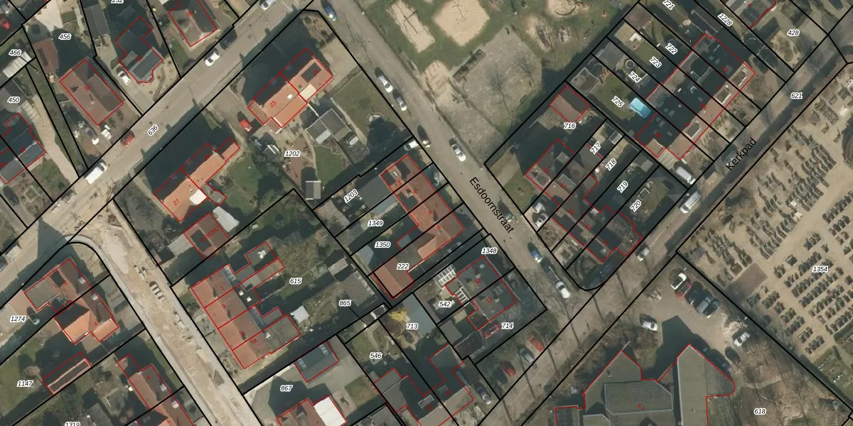 Esdoornstraat 6 is gelegen op kadastraal perceel GBK00M1350. Deze kadastrale aanduiding is uniek en wordt gebruikt door het Kadaster om eigendomsrechten en andere zakelijke rechten vast te leggen. Het perceel maakt onderdeel uit van de kadastrale gemeente Groesbeek.