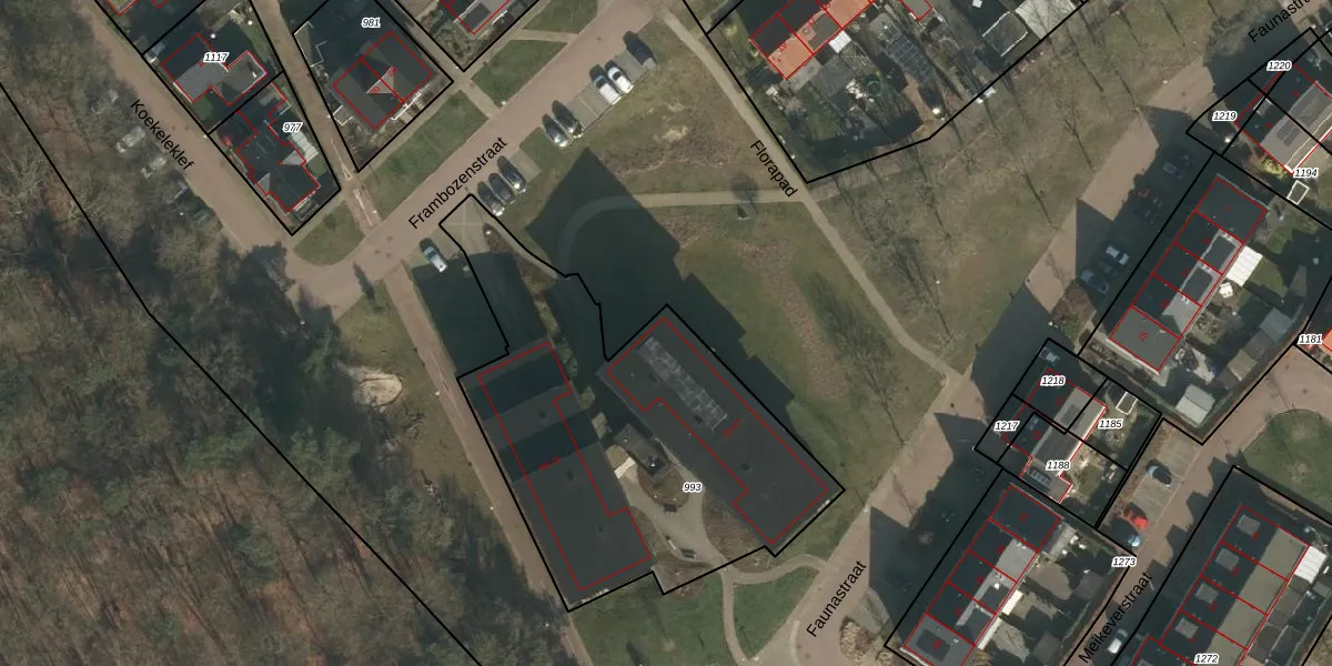 Frambozenstraat 23 is gelegen op kadastraal perceel GBK00F993. Deze kadastrale aanduiding is uniek en wordt gebruikt door het Kadaster om eigendomsrechten en andere zakelijke rechten vast te leggen. Het perceel maakt onderdeel uit van de kadastrale gemeente Groesbeek.