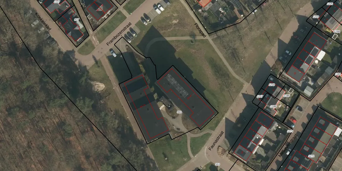 Het perceel waarop Frambozenstraat 31 staat heeft een oppervlakte van 1795 m². Dit is een zeer groot perceel. De perceeloppervlakte wordt geregistreerd door het Kadaster. Gedetailleerde informatie over de maten van dit perceel kunt u vinden in het rapport Kadastrale kaart met maatvoering van Frambozenstraat 31.