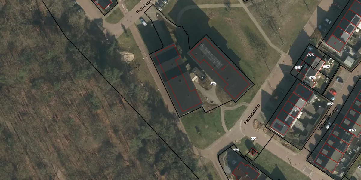 Het perceel waarop Frambozenstraat 61 staat heeft een oppervlakte van 1795 m². Dit is een zeer groot perceel. De perceeloppervlakte wordt geregistreerd door het Kadaster. Gedetailleerde informatie over de maten van dit perceel kunt u vinden in het rapport Kadastrale kaart met maatvoering van Frambozenstraat 61.