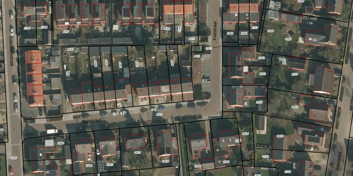 Fretstraat 17 is gelegen op kadastraal perceel GBK00C4386. Deze kadastrale aanduiding is uniek en wordt gebruikt door het Kadaster om eigendomsrechten en andere zakelijke rechten vast te leggen. Het perceel maakt onderdeel uit van de kadastrale gemeente Groesbeek.