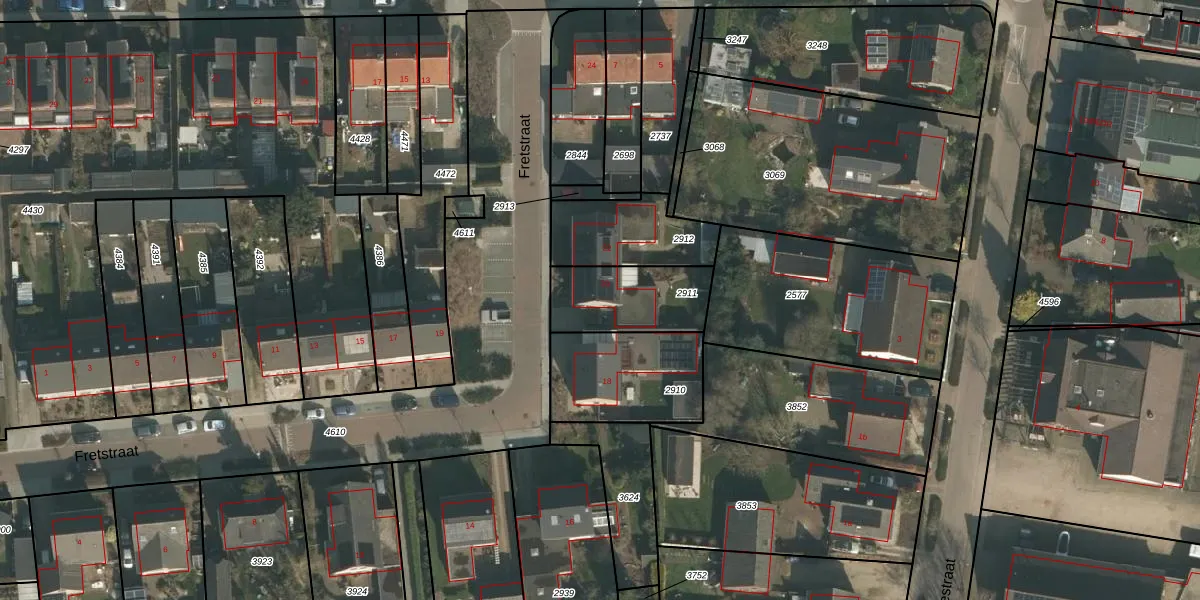 Fretstraat 20 is gelegen op kadastraal perceel GBK00C2911. Deze kadastrale aanduiding is uniek en wordt gebruikt door het Kadaster om eigendomsrechten en andere zakelijke rechten vast te leggen. Het perceel maakt onderdeel uit van de kadastrale gemeente Groesbeek.