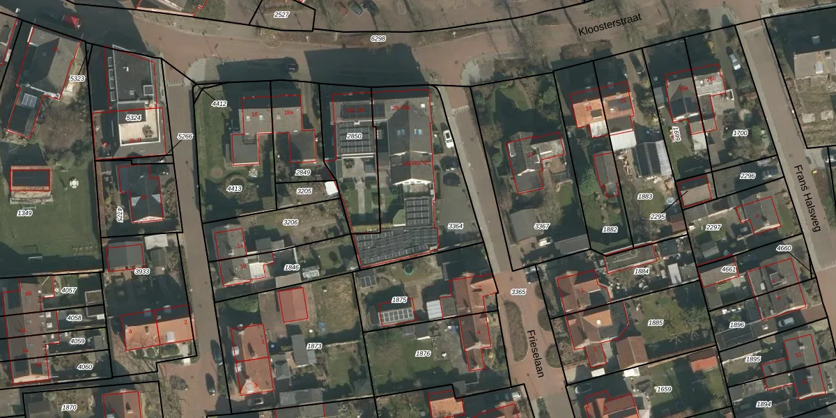 Het perceel waarop Frieselaan 2-a staat heeft een oppervlakte van 858 m². Dit is een groot perceel. De perceeloppervlakte wordt geregistreerd door het Kadaster. Gedetailleerde informatie over de maten van dit perceel kunt u vinden in het rapport Kadastrale kaart met maatvoering van Frieselaan 2-a.