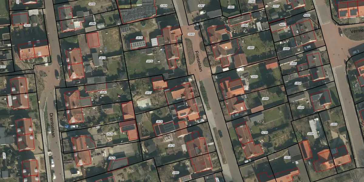 Frieselaan 6 is gelegen op kadastraal perceel GBK00L1877. Deze kadastrale aanduiding is uniek en wordt gebruikt door het Kadaster om eigendomsrechten en andere zakelijke rechten vast te leggen. Het perceel maakt onderdeel uit van de kadastrale gemeente Groesbeek.