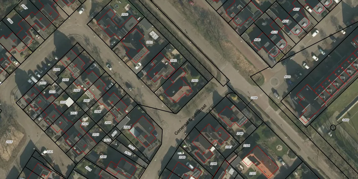 Generaal Gavinstraat 361 is gelegen op kadastraal perceel GBK00E2003. Deze kadastrale aanduiding is uniek en wordt gebruikt door het Kadaster om eigendomsrechten en andere zakelijke rechten vast te leggen. Het perceel maakt onderdeel uit van de kadastrale gemeente Groesbeek.