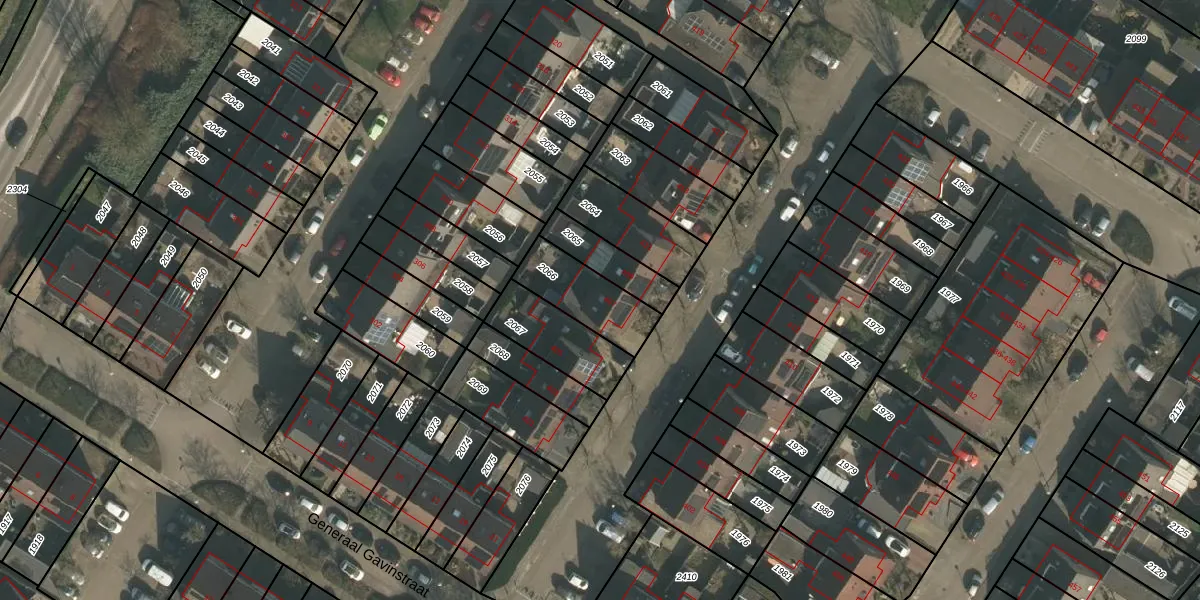 Generaal Gavinstraat 407 is gelegen op kadastraal perceel GBK00E2066. Deze kadastrale aanduiding is uniek en wordt gebruikt door het Kadaster om eigendomsrechten en andere zakelijke rechten vast te leggen. Het perceel maakt onderdeel uit van de kadastrale gemeente Groesbeek.