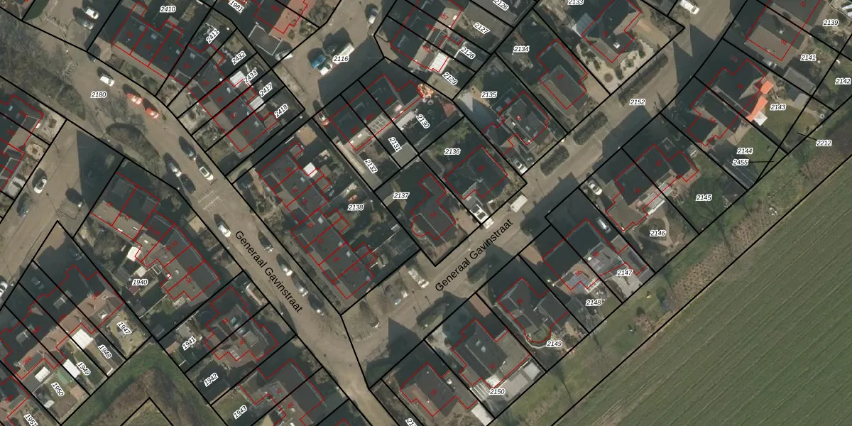 Generaal Gavinstraat 53 is gelegen op kadastraal perceel GBK00E2137. Deze kadastrale aanduiding is uniek en wordt gebruikt door het Kadaster om eigendomsrechten en andere zakelijke rechten vast te leggen. Het perceel maakt onderdeel uit van de kadastrale gemeente Groesbeek.