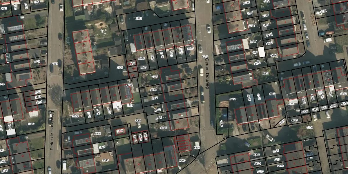 Het perceel waarop Gerard Douweg 30 staat heeft een oppervlakte van 186 m². Dit is een middelgroot perceel. De perceeloppervlakte wordt geregistreerd door het Kadaster. Gedetailleerde informatie over de maten van dit perceel kunt u vinden in het rapport Kadastrale kaart met maatvoering van Gerard Douweg 30.