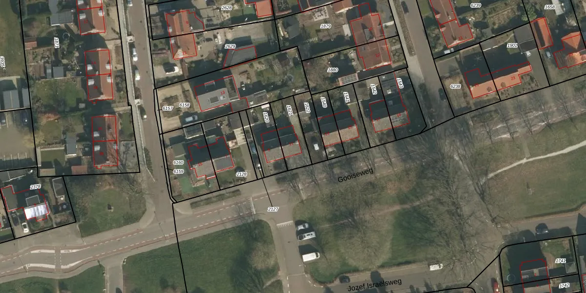Gebruik de zoekbalk of klik op een perceel voor informatie over de adressen binnen dit perceel.