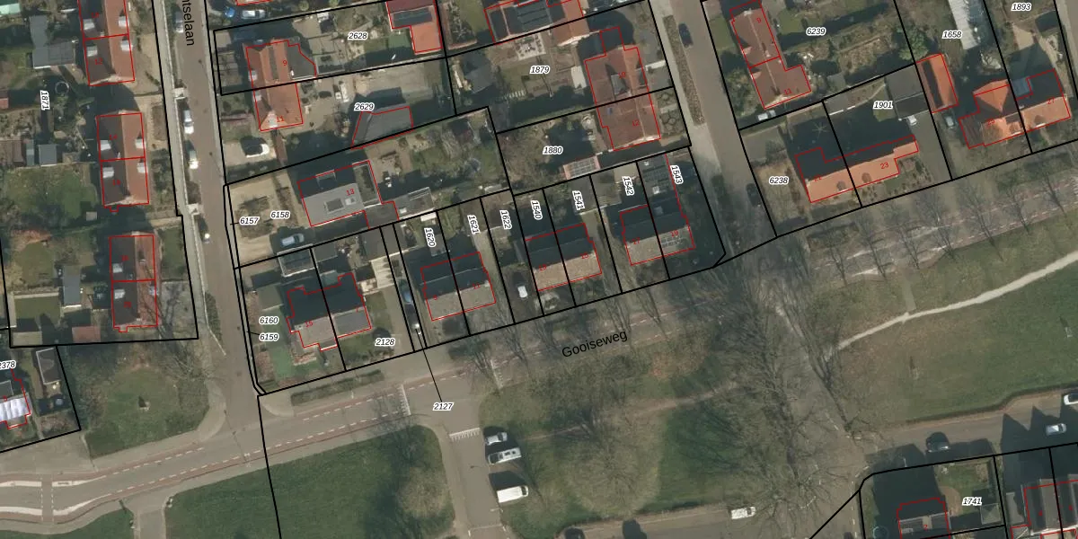 Gooiseweg 13 is gelegen op kadastraal perceel GBK00L1540. Deze kadastrale aanduiding is uniek en wordt gebruikt door het Kadaster om eigendomsrechten en andere zakelijke rechten vast te leggen. Het perceel maakt onderdeel uit van de kadastrale gemeente Groesbeek.