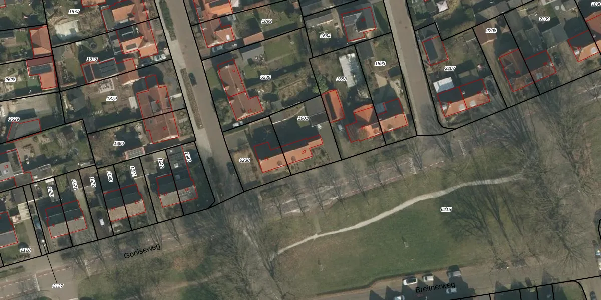 Gooiseweg 23 is gelegen op kadastraal perceel GBK00L1901. Deze kadastrale aanduiding is uniek en wordt gebruikt door het Kadaster om eigendomsrechten en andere zakelijke rechten vast te leggen. Het perceel maakt onderdeel uit van de kadastrale gemeente Groesbeek.