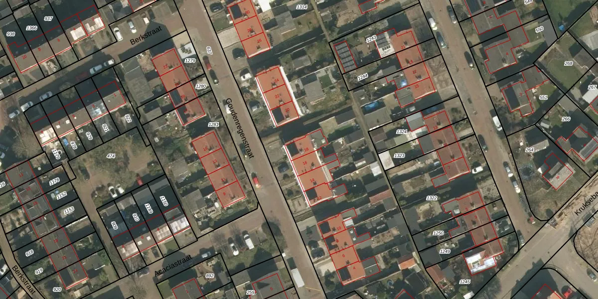 Goudenregenstraat 18 is gelegen op kadastraal perceel GBK00M1314. Deze kadastrale aanduiding is uniek en wordt gebruikt door het Kadaster om eigendomsrechten en andere zakelijke rechten vast te leggen. Het perceel maakt onderdeel uit van de kadastrale gemeente Groesbeek.
