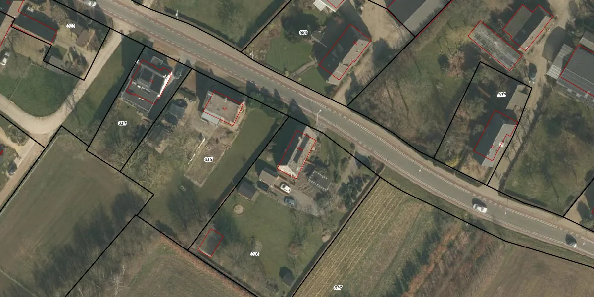 Het adres is gelegen op perceel 316 in de sectie R en de kadastrale gemeente Groesbeek. De kadastrale aanduiding is aldus GBK00-R-316. De gemiddelde perceelgrootte in Groesbeek is 4188,64 m². Dit perceel is kleiner: de perceeloppervlakte bedraagt 2135 m². Het grootste perceel in de kadastrale gemeente is 99,9 ha. Het kleinste perceel heeft een oppervlakte van 0 m². Dit is het enige adres dat aanwezig is op het perceel. In de Basisregistratie Kadaster (BRK) werden de grenzen van het perceel geregistreerd op 04-05-2011.