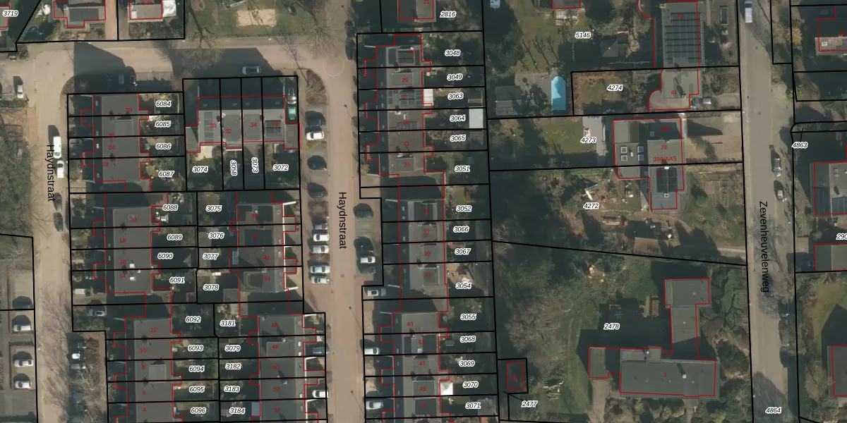 Haydnstraat 35 is gelegen op kadastraal perceel GBK00L3052. Deze kadastrale aanduiding is uniek en wordt gebruikt door het Kadaster om eigendomsrechten en andere zakelijke rechten vast te leggen. Het perceel maakt onderdeel uit van de kadastrale gemeente Groesbeek.