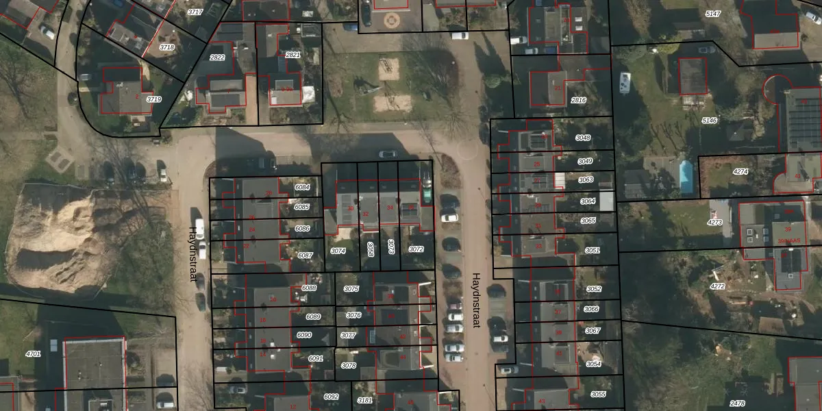 Haydnstraat 36 is gelegen op kadastraal perceel GBK00L3072. Deze kadastrale aanduiding is uniek en wordt gebruikt door het Kadaster om eigendomsrechten en andere zakelijke rechten vast te leggen. Het perceel maakt onderdeel uit van de kadastrale gemeente Groesbeek.