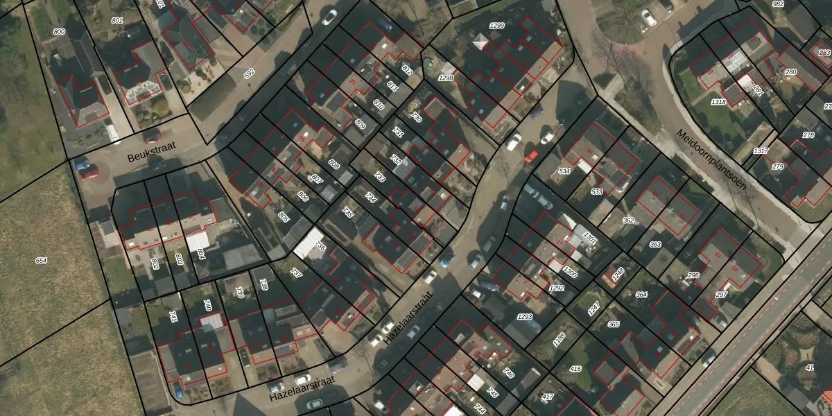 Het perceel waarop Hazelaarstraat 18 staat heeft een oppervlakte van 169 m². Dit is een middelgroot perceel. De perceeloppervlakte wordt geregistreerd door het Kadaster. Gedetailleerde informatie over de maten van dit perceel kunt u vinden in het rapport Kadastrale kaart met maatvoering van Hazelaarstraat 18.