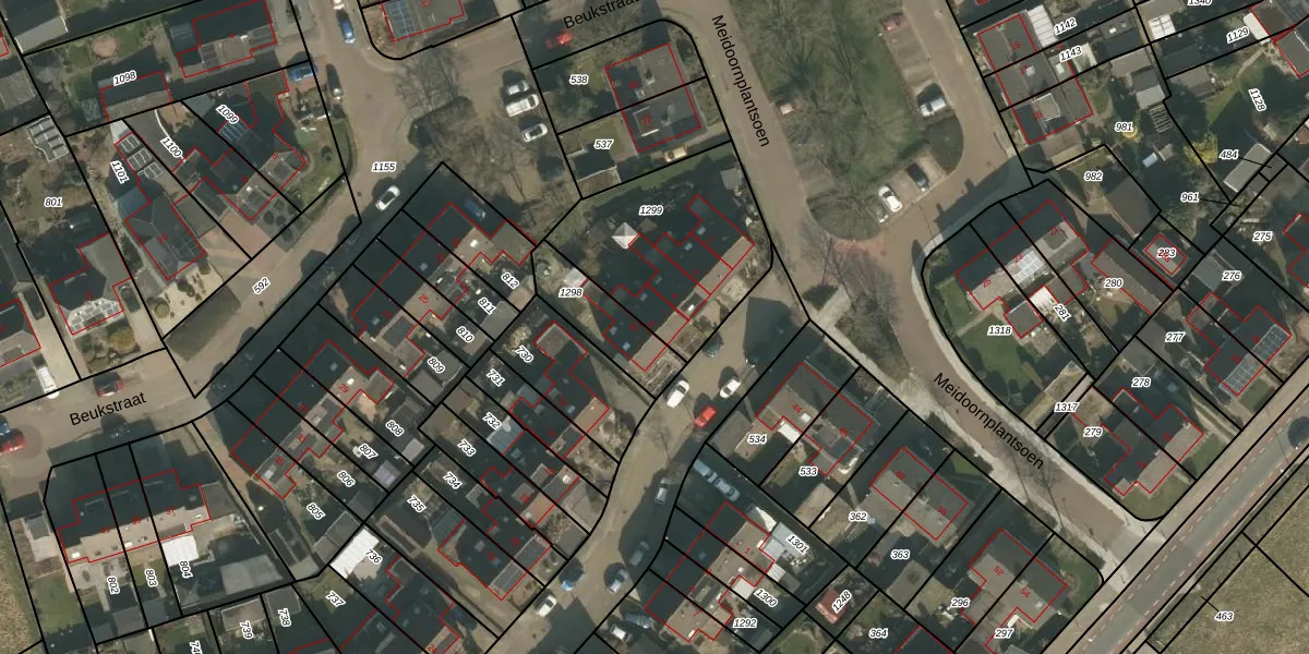Het adres is gelegen op perceel 1299 in de sectie M en de kadastrale gemeente Groesbeek. De kadastrale aanduiding is aldus GBK00-M-1299. De gemiddelde perceelgrootte in Groesbeek is 4188,64 m². Dit perceel is kleiner: de perceeloppervlakte bedraagt 685 m². Het kleinste perceel in de kadastrale gemeente is 0 m² groot. De grootste perceeloppervlakte is 99,9 ha. Op het perceel liggen in totaal 4 adressen. In de Basisregistratie Kadaster (BRK) werden de grenzen van het perceel geregistreerd op 13-03-2012.