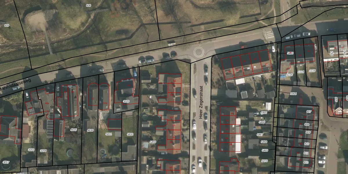 Heer Zegerstraat 71 is gelegen op kadastraal perceel GBK00L5459. Deze kadastrale aanduiding is uniek en wordt gebruikt door het Kadaster om eigendomsrechten en andere zakelijke rechten vast te leggen. Het perceel maakt onderdeel uit van de kadastrale gemeente Groesbeek.