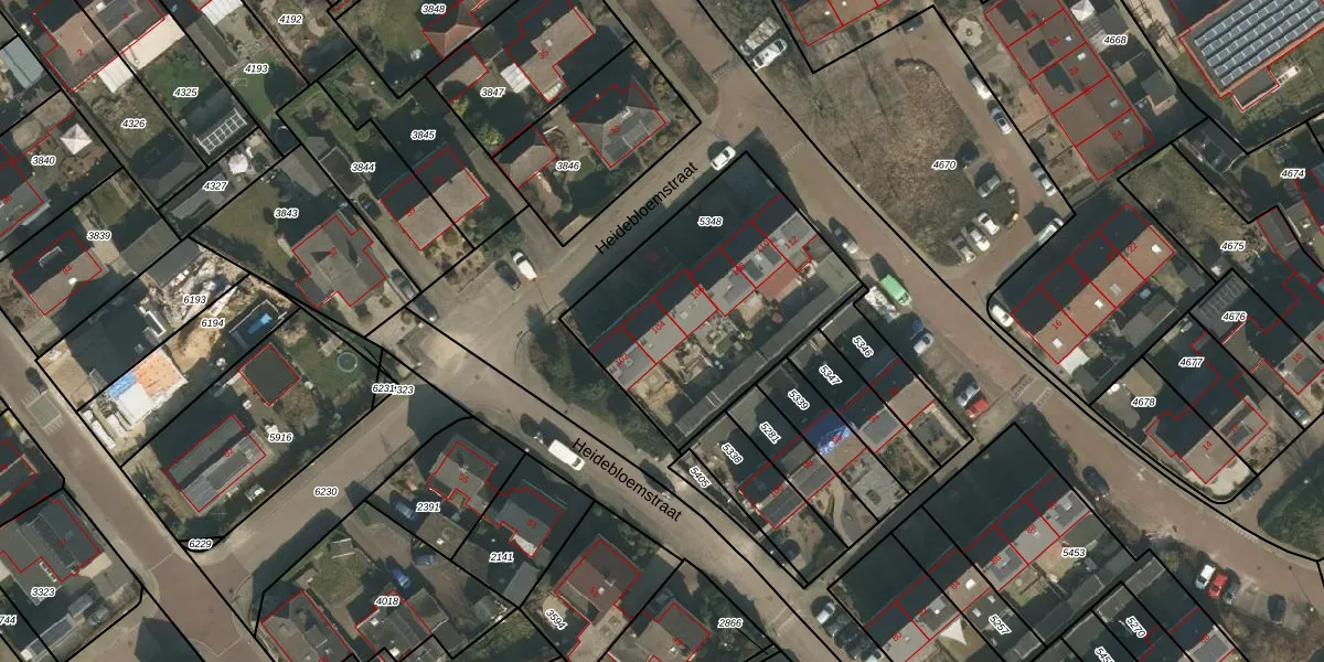 Het perceel waarop Heidebloemstraat 104 staat heeft een oppervlakte van 1006 m². Dit is een zeer groot perceel. De perceeloppervlakte wordt geregistreerd door het Kadaster. Gedetailleerde informatie over de maten van dit perceel kunt u vinden in het rapport Kadastrale kaart met maatvoering van Heidebloemstraat 104.