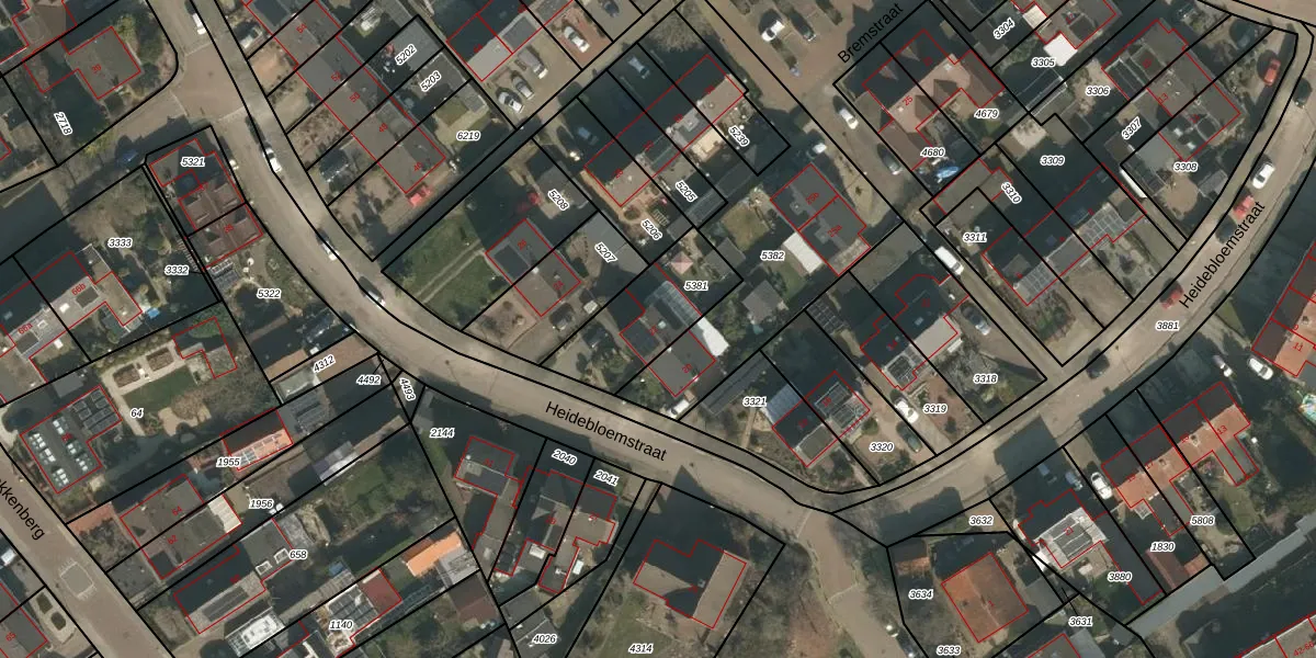 Het perceel waarop Heidebloemstraat 22 staat heeft een oppervlakte van 320 m². Dit is een groot perceel. De perceeloppervlakte wordt geregistreerd door het Kadaster. Gedetailleerde informatie over de maten van dit perceel kunt u vinden in het rapport Kadastrale kaart met maatvoering van Heidebloemstraat 22.
