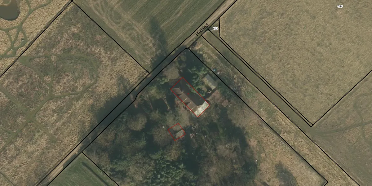 Het perceel waarop Heiland 9 staat heeft een oppervlakte van 9535 m². Dit is een zeer groot perceel. De perceeloppervlakte wordt geregistreerd door het Kadaster. Gedetailleerde informatie over de maten van dit perceel kunt u vinden in het rapport Kadastrale kaart met maatvoering van Heiland 9.